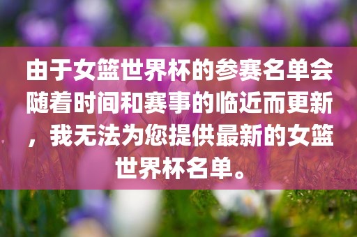 由于女篮世界杯的参赛名单会随着时间和赛事的临近而更新,我无法为您提供最新的女篮世界杯名单。