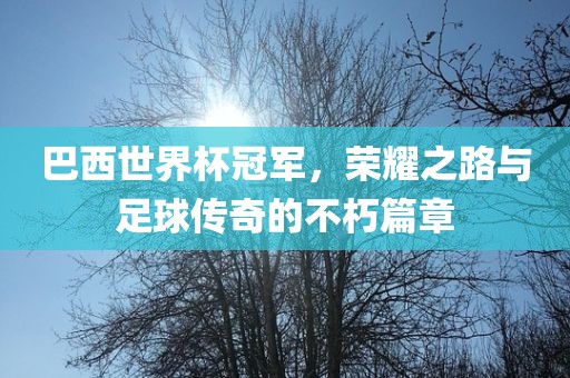 巴西世界杯冠军的荣耀之路,是足球传奇的不朽篇章,回顾这段历程,我们不禁为巴西足球的辉煌成就而感叹,我们也期待着未来有更多的球队和球员,在世界杯赛场上续写属于自己的传奇故事,让我们共同期待下一届世界杯的到来,见证更多精彩瞬间和荣耀时刻!