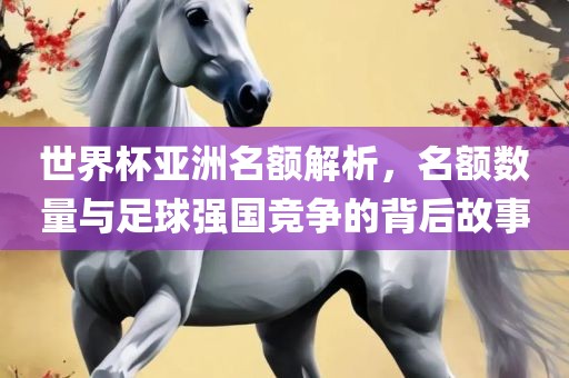 摘要:本文将解析世界杯亚洲名额分配情况,探讨名额数量与足球强国间的竞争背后的故事。文章将介绍亚洲足球的发展状况,分析各国足球实力的差异以及世界杯名额分配原则,同时探讨亚洲足球面临的挑战和机遇。通过本文,读者将了解亚洲足球在世界杯中的位置和影响力,以及各国足球发展的潜力和前景。