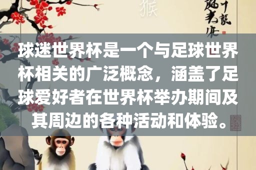 球迷世界杯是一个与足球世界杯相关的广泛概念,涵盖了足球爱好者在世界杯举办期间及其周边的各种活动和体验。