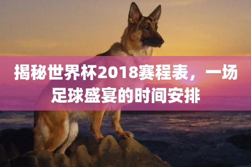 摘要:本文将为你揭秘世界杯足球赛2018年的赛程表,详细介绍这场足球盛宴的时间安排。从预选赛到决赛,每个阶段的比赛时间、对战双方和比赛地点都将一一呈现。这是一场全球瞩目的盛事,不容错过。阅读本文,让你对世界杯足球赛的时间安排一目了然。