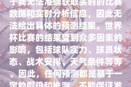 摘要:无法给出关于俄罗斯世界杯的具体预测结果,因为预测涉及众多因素,如球队实力、球员状态、战术安排和天气条件等,且无法获取实时比赛数据和分析信息。任何预测都是基于假设和推测,无法确保准确性。